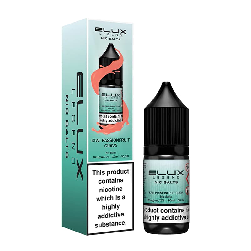 Enjoy ELUX Legend Kiwi Passionfruit Guava nic salt in your choice of 10mg or 20mg nicotine strengths.